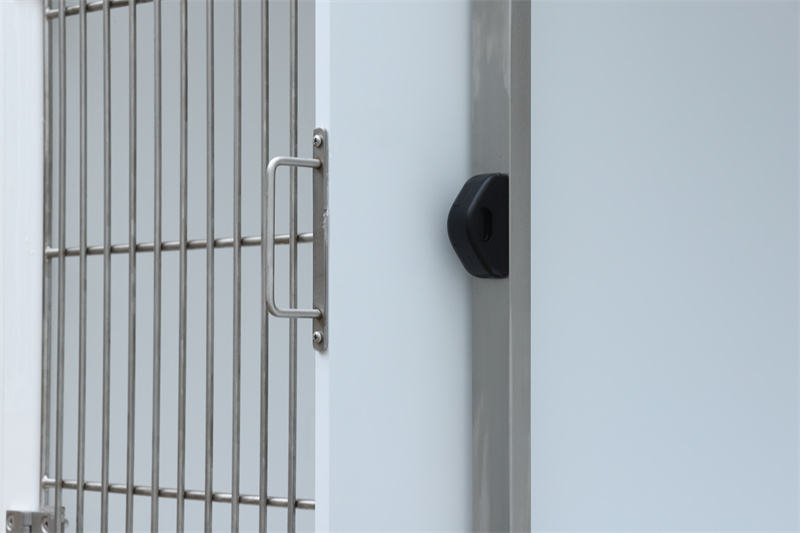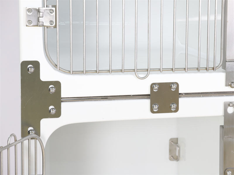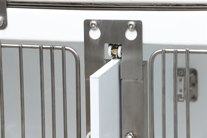 ຫົວສີດ ແລະທໍ່ທີ່ຕິດຕັ້ງໄວ້ລ່ວງໜ້າ, ລະບົບລະບາຍນ້ຳທີ່ມີຕົວກອງ, ແລະປລັກສຽບໄຟ ຫັນປ່ຽນມັນຈາກພຽງແຕ່ຝາອັດປາກມົດລູກໃຫ້ເປັນບ່ອນເຮັດວຽກຫຼາຍປະການ. ອຸປະກອນໄຟຟ້າເຊັ່ນ: ເຄື່ອງໃຊ້ຢາສລົບ, ເຄື່ອງອັດອົກຊີເຈນ, ແລະແຜ່ນເຮັດຄວາມຮ້ອນສາມາດສຽບເຂົ້າໄປໃນເຕົ້າສຽບແລະຖືກໂຈະຈາກແຖບກາງຂອງປະຕູ. Veterinary Waterproof Fiberglass Modular Dog Cage ປະຕູທາງຫນ້າຂອງອະນຸຍາດໃຫ້ຕິດຕັ້ງ sunshades ຜ່ານໂຄ້ງຮູບ U, ສະກັດແສງແດດໃນຂະນະທີ່ຮັບໃຊ້ເປັນອຸປະສັກລົມ.